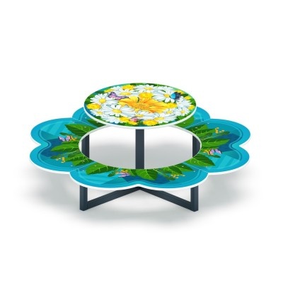 выполнены из влагостойкой фанеры толщиной 24 мм, кромки фанеры тщательно шлифованы, окрашены в желтый, зеленый, красный и синий цвета. Размер: 760х760х24 |
