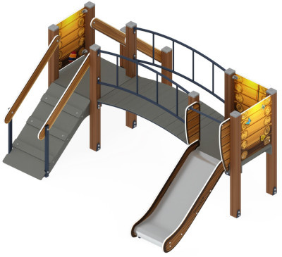 Борта выполнены влагостойкой фанеры толщиной 24 мм. В комплекте 2 шт. и перекладин из трубы диаметром 27 мм. Борта рукохода крепятся к брусу малой башни и двум столбам шведской стенки |