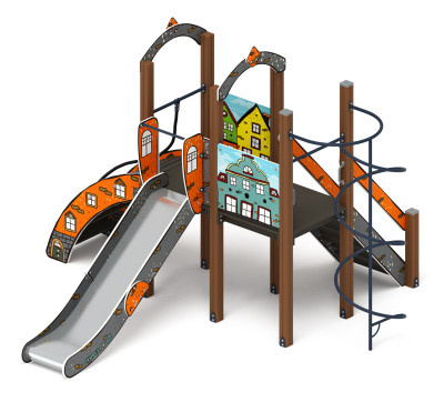 2 | Горка | Скат горки шириной 530 мм, выполнен из нержавеющей стали t=1,5 мм - цельного листа, борта выполнены из влагостойкой фанеры толщиной 24 мм, кромки фанеры тщательно шлифованы, борта окрашены при помощи УФ печати, принт - в стиле «Эко». Опорный каркас горки выполнен из профиля 40х25 и труб диаметром 32 мм (металл имеет плавные радиусы и тщательную обработку швов, покрыт порошковой краской) Размер горки в плане 530х2270х1200 (h) | комплект | |