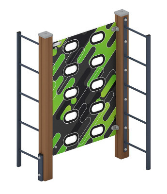 Скалолаз состоит из щита из влагостойкой фанеры, толщиной 18 мм, размер 1180х800, с прорезями. |